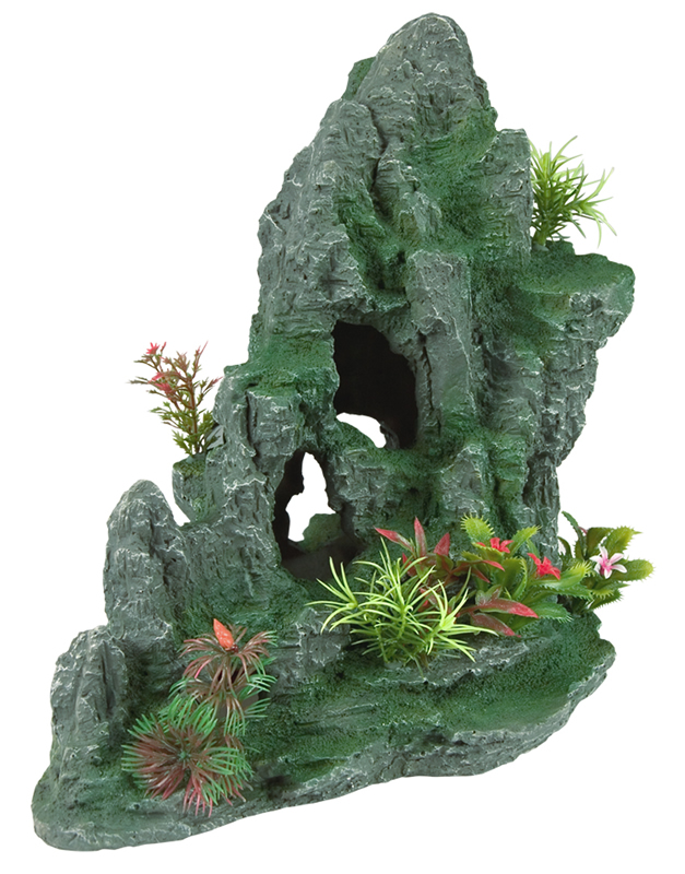 No single item can liven up a terrarium quite like a Granite Cave! Reptiles love climbing the inventively designed rocklike surfaces, or hiding behind realistic foliage and in cool, private niches. Shades of green, red and gray add an immediate dash of color. On cleaning day, pet owners appreciate the surfaces that naturally resist bacterial growth and clean quickly with mild soap and warm water. Safe for both aquatic and terrestrial environments. |